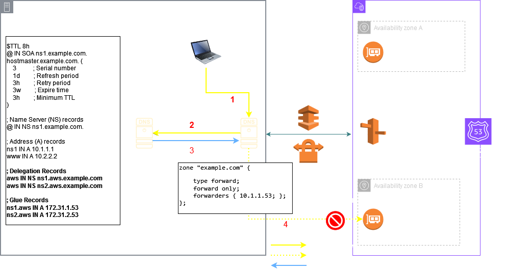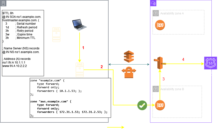 aws NS endpoint1.onprem.com