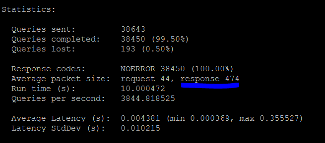 Next I used this command for generating a DNS query load test: