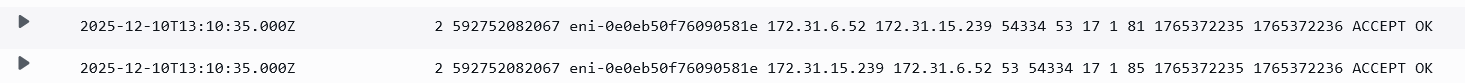 - You can check VPC Flow Logs of the Inbound endpoint ENIs. Keep in mind that only the query from on prem to Inbound Endpoint ENI will show in the VPC Flow Logs. The part where the Inbound Endpoint forwards the query to the VPC DNS Server (.2) is not captured in VPC Flow Logs.