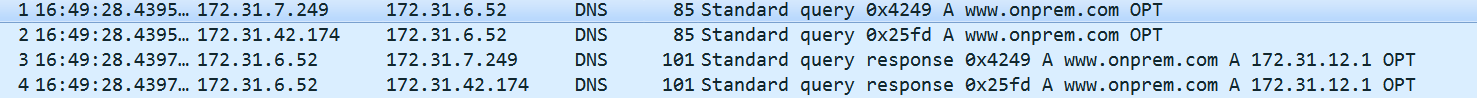 In this test I added another Authoritative target server for the onprem.com domain inside my VPC: 172.31.36.253: